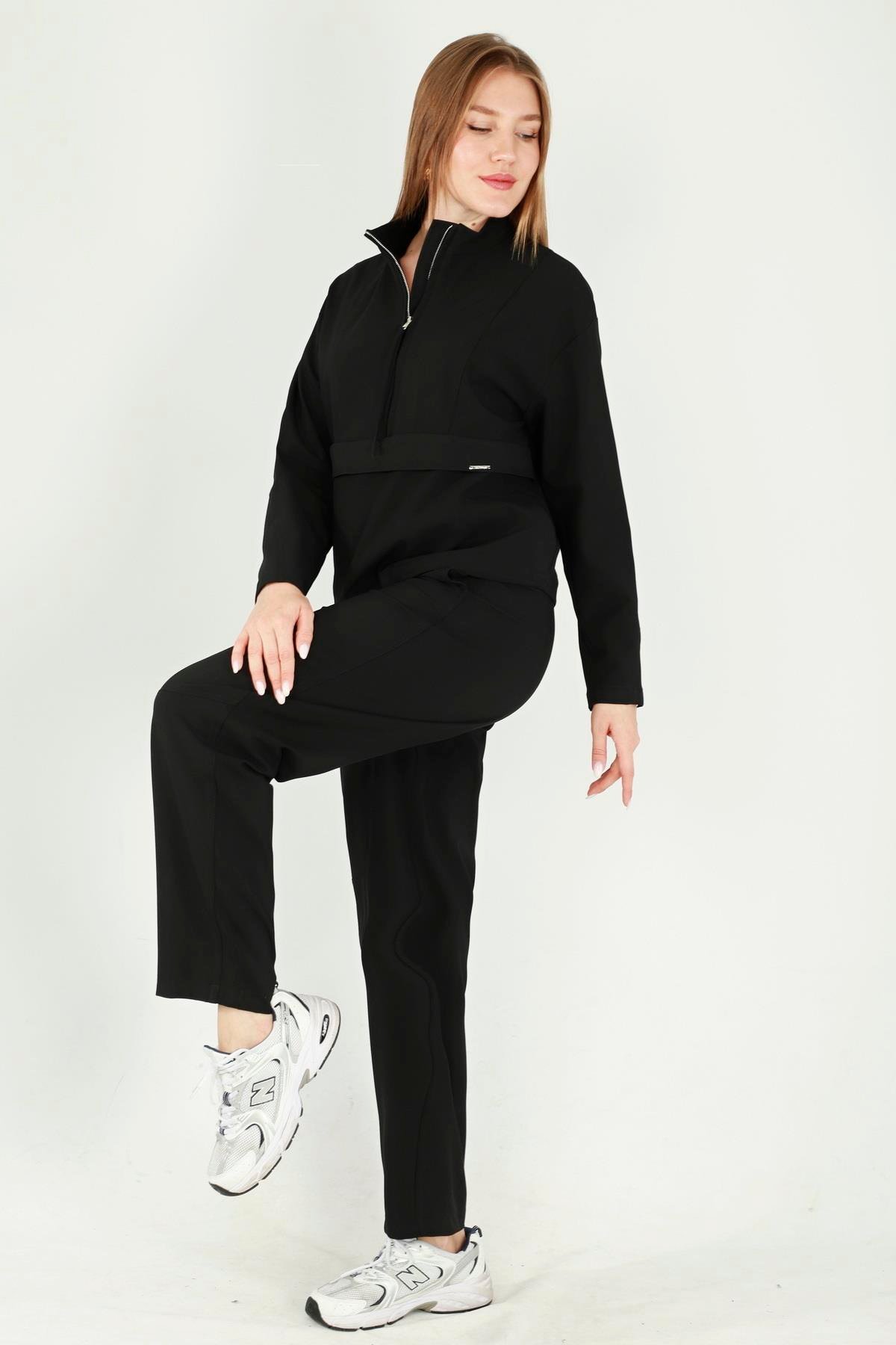 Rahat kesimiyle öne çıkan siyah casual spor takım, gün boyu konfor ve şıklığı bir arada sunar.