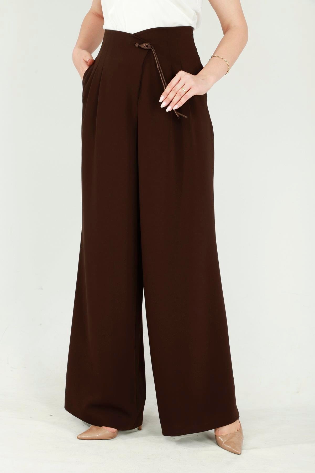 Şıklığı ve rahatlığı bir arada sunan pileli palazzo pantolon, geniş paça tasarımıyla özgür hareket imkanı sağlar.